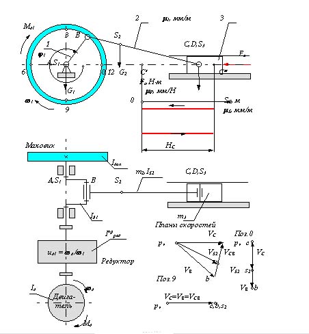 Дано: Кинематическая схема механизма поршневого насоса(li, j i ), Мд , Fc , mi , ISi ;