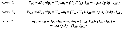 Простой и наглядный метод определения передаточных функций - графоаналитический метод планов возможных скоростей. При этом в произвольном масштабе строятся планы скоростей для рада положений цикла движения механизма. По отрезкам плана скоростей рассчитываются соответствующие передаточные функции по следующим формулам (для машины, схема которой изображена на рис.6.8):