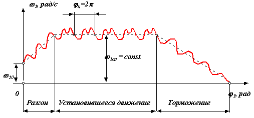 В зависимости от того какую работу совершают внешние силы за цикл движения машины различают три режима движения: разгон, торможение и установившееся движение. Циклом называют период времени или период изменения обобщенной координаты через который все параметры системы принимают первоначальные значения.