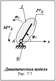 В качестве динамической модели принимаем звено 1, совершающее вращательное движение вокруг точки А с круговой частотой w 1 , положение которого определяется обобщенной координатой j 1 . Параметры динамической модели: суммарный приведенный момент инерции звеньев механизма Iпрå и суммарный приведенный момент, действующих на него внешних сил, Mпрå определяются в следующей последовательности: