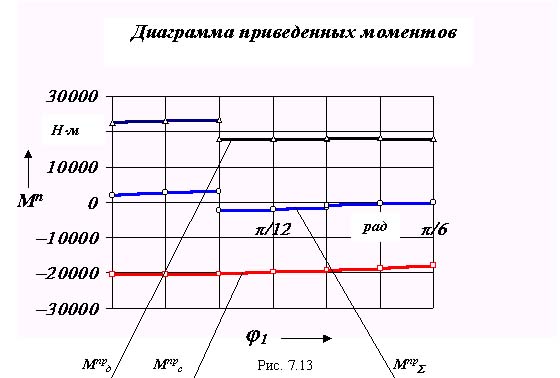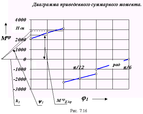 На рис. 7.13 приведены диаграммы приведенных моментов: сопротивления Мпрå с , движущего Мпр Fд i и суммарного Мпрå с = Мпрå + Мпр Fд i .