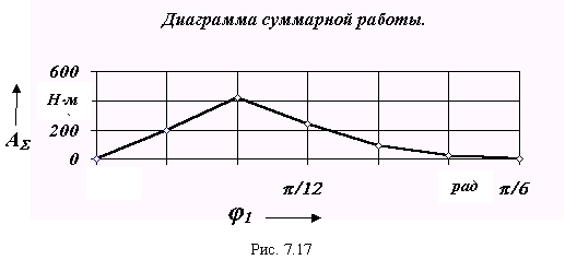 Расчет проведем для закона изменения движущей силы, который изображен на рис.7.5. Величина движущей силы в начальном положении механизма рассчитывается по формуле