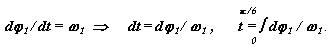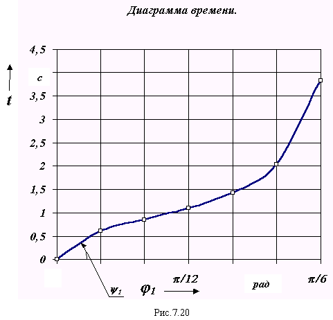 Время цикла определяется по диаграмме t= f (j 1). Для построения этой диаграммы проведем интегрирование диаграммы угловой скорости