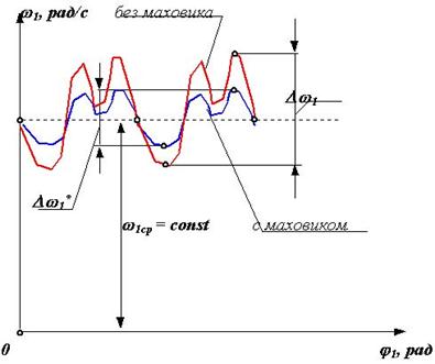 Величина амплитуды колебаний скорости D w 1 определяется разностью между максимальной w 1max и минимальной w 1min скоростями. За меру измерения колебаний скорости в установившемся режиме принята относительная величина, которая называется коэффициентом изменения средней скорости
