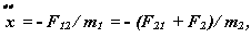 если m2 = m1 = m, то F21 => - 0.5*F2 ;