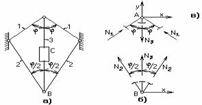 Определить усилия в стержнях системы, возникающие в результате поворота двухсторонней винтовой стяжки <<С>> на угол