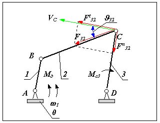 На рис. 10.7 изображен четырехшарнирный механизм. К входному звену 1 этого механизма приложен движущий момент Мд , к выходному звену 3 -