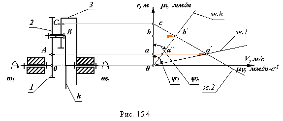 В планетарном редукторе, изображенном на рис.15.4 на звене 2 нарезаны два зубчатых венца: