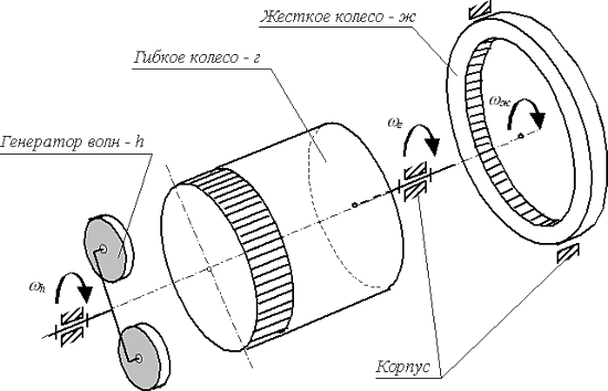 Движение всех звеньев волнового механизма осуществляется в параллельных плоскостях. Поэтому механизм волновой зубчатой передачи можно рассматривать как плоский.