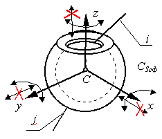 При выполнении первого условия кинематические пары с несколькими подвижностями заменяют эквивалентными кинематическими соединениями. Пример такого соединения для сферической пары дан на рис. 19.6.