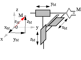 - прямоугольной декартовой с координатами xM, yM, zM;