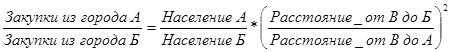 Правило Рейли показывает пропорцию, в которой товары закупаются в городах А и Б жителями города В.
