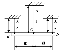 - Стержни 1 и 2 имеют одинаковую жесткость