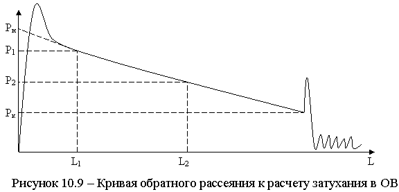 Измерение коэффициента затухания ОВ по характеристикам обратного рассеяния производится на линейном монотонном участке рефлектограммы, рисунок 10.9.