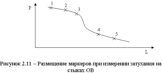 Известен двухмаркерный способ (рефлектометр ОР – 310), при котором измеритель по обе стороны от стыка на монотонных участках характеристики расставляет два маркера так, чтобы место стыка находилось между ними на одинаковом расстоянии [19]. Программа, управляющая процессом измерения, предусматривает автоматическое разбиение участка между маркерами на равные интервалы, выполнение операций измерения уровней мощности, аппроксимации, экстраполяции и расчета затухания в месте соединения ОВ.