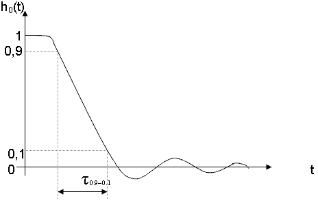 - время нарастания переходной характеристики ФЭПП (Rise time of the normalized transfer characteristic) - минимальный интервал времени между точками переходной нормированной характеристики ФЭПП со значениями 0.1 и 0.9 соответственно;