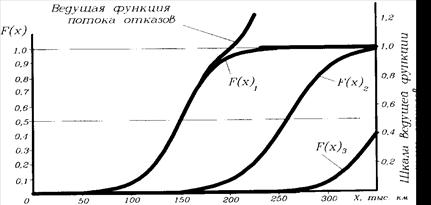 находим суммированием ординат всех изображенных на графике кривых вероятностей отказов для одинаковых значений наработки