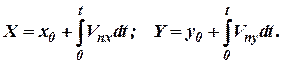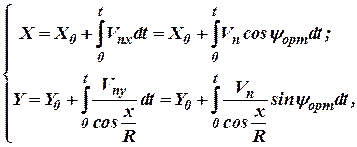 Таким образом, текущие координаты местоположения ЛА могут быть получены путем интегрирования (5) при условии