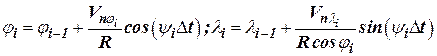 в случае воздушного счисления и правой ортодромической системы координат (рис. 6) могут быть определены так: