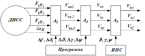 - алгоритмы пересчета составляющих путевой скорости на оси, связанные с корпусом гироплатформы ИНС;