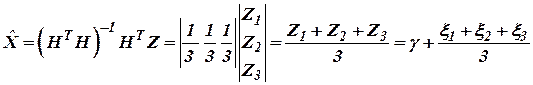 Рассмотрим систему измерения углового положения ЛА с использованием МНК. В данной системе на основе информации от трех идентичных ИНС вычисляется угол крена ЛА. Показания первой, второй и третей ИНС соответственно равны: