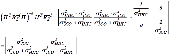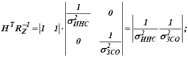 измеряется с помощью ИНС и астроориентатора (звездно-солнечного) ЗСО, ошибки ИНС и ЗСО некоррелированы. Согласно паспортным данным дисперсии ошибок ИНС и ЗСО составляют: