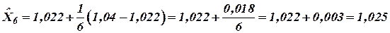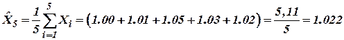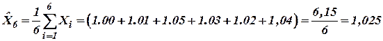 | Результат измерения | 1,00 | 1,01 | 1,05 | 1,03 | 1,02 | 1,04 |