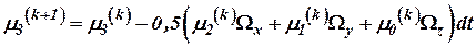 К преимуществам этого метода построения матрицы ориентации относится гарантированная ортогональность матрицы ориентации, вычисленной по соотношениям (34). Кроме этого практика показывает, что вычисление с использованием параметров Родрига-Гамильтона дает наименьшие вычислительные затраты по сравнению с другими методами при условии обеспечения одинаковых точностных характеристик. Вместе с тем, определение матрицы С через параметры Родрига-Гамильтона приводит к необходимости решения двух однотипных систем дифференциальных уравнений 4-го порядка каждая.