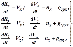 располагаются в плоскости экватора. В этом случае для синтеза алгоритма БИНС целесообразно воспользоваться векторным уравнением (6), скалярный эквивалент которого имеет вид: