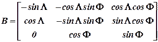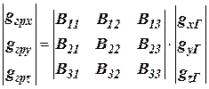 - проекции вектора гравитационного ускорения на оси географического базиса, матрица А определяется, например, из решения уравнения Пуассона:
