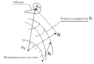 Для решения поставленной задачи рассмотрим движения объекта относительно планеты (рис.1).