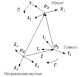 Постановка задачи: В пространстве движется объект. Необходимо на его борту в каждый момент времени получать информацию об ориентации, скоростях и координатах этого объекта относительно планеты. А планета движется относительно инерциальной системы отсчета. То есть поставим задачу создания системы, генерирующей в каждый момент времени движения объекта указанную информацию.