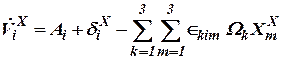 Применив операцию абсолютного дифференцирования по времени (АДВ) к равенству (1), получим: