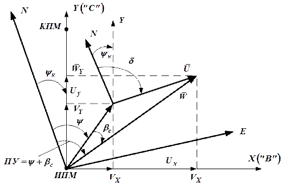и путевым углом ПУ, равным сумме: