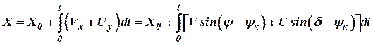 , то для получения составляющих пути в направлении координатных осей необходимо интегрировать составляющие путевой скорости