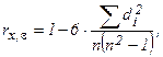 где di – разность между рангами xi и εi,