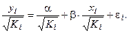 В ней остатки гетероскедастичны. Предполагается отсутствие в них автокорреляции, поделив обе части на