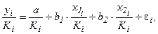 Для множественной регрессии пусть рассматривается модель вида: