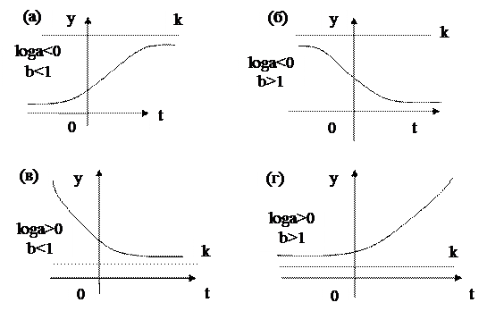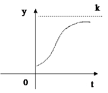 Кривая характеризует развитие показателя во времени, когда ускоренный рост в начале периода сменяется замедляющимся темпом роста вплоть до полной остановки.