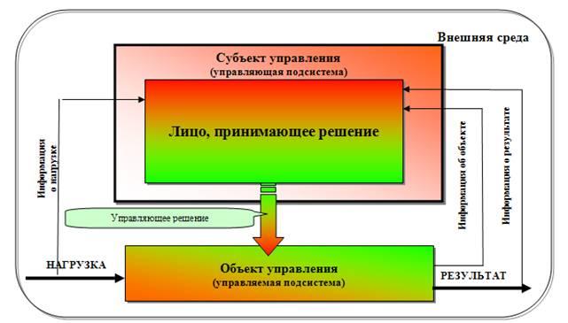 В теории управления существует множество подходов и методов управления: управление по целям, управление по результатам, управление по отклонениям, ситуационное управление. В этих подходах управление представляет собой некоторое воздействие на систему, как часть среды, призванное скорректировать функционирование этой системы, определяемое начальными условиями, исходным состоянием и обменными процессами в системе и с внешней средой ради достижения определенной цели.