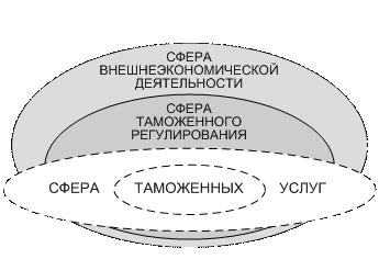 Схематически контуры таможенной деятельности или сферы государственных таможенных услуг изображаем на доске на рис. 2. Сфера таможенных услуг – это область взаимоотношений производителя и потребителя таможенных услуг по поводу их предоставления.