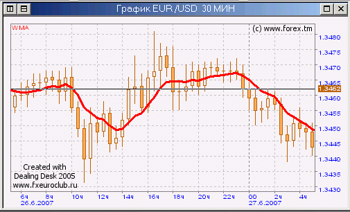 - Взвешенная скользящая средняя. Weighted Moving Average (WMA),