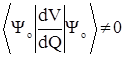 Проанализируем это выражение. Интеграл при Q – первая производная от потенциальной энергии по нормальной координате в точке с энергией Vo. Если первая производная равна нулю, то эта точка соответствует минимуму или максимуму на поверхности потенциальной энергии. Т.е. эта точка является особой. Если первая производная не равна нулю, то эта точка не является особой. Поскольку первая производная в приведенном выше выражении представляет собой матричный элемент. Если матричный элемент преобразуется по полносимметричному представлению, то его величина не равна нулю. Т.е.