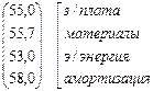 2. Определить себестоимость продукции каждого отдела, если известна матрица цен единицы ресурсов S = (56, 68, 75, 105).