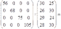 3.2. Цены на ресурсы запишем в виде диагональной матрицы 4´4 и умножим на матрицу затрат ресурсов: