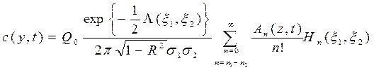 предположим, что в горизонтальных сечениях облака масса примеси распределена в соответствии гауссовского закона. В этом случае