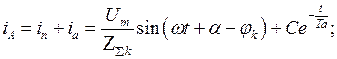 После включения выключателя В при КЗ (рис. 3.1) схема делится точкой КЗ на две части: правую и левую. Ток в правой части будет существовать до тех пор, пока энергия, запасенная в индуктивности LН,не перейдет в тепло в активном сопротивлении rН.