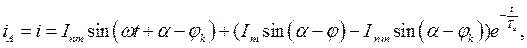 Это вычисление ударного тока не является строгим, так как полный ток зависит от времени и угла включения. Строгое условие максимального мгновенного значения тока можно получить нахождением экстремума выражения (3.9). При условии отсутствия предшествующего тока