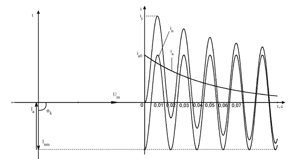 На рисунке 3.2: iу – ударный ток – наибольшее мгновенное значение тока;