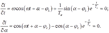 Приравнивая к нулю частные производные по времени и углу, получаем: